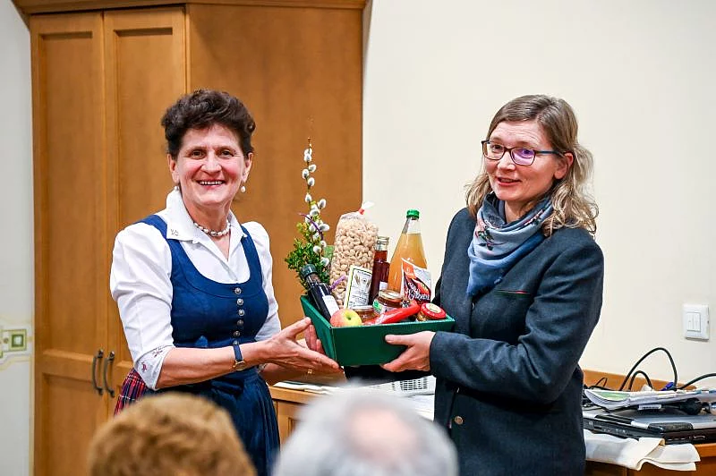Am Schluss wurden als Gastgeschenk Narzissen verteilt und Obfrau Maria Hofer wünschte allen “Viel Freude, alles Gute und bleibt´s g´sund!
