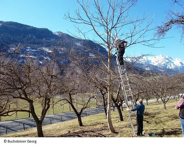 Unsere ausgebildeten Baumwärter zeigen vor Ort den fachgerechten Schnitt und erklären dabei die wichtigsten theoretischen Grundlagen. Im Mittelpunkt steht die praktische Vorführung direkt am Baum.