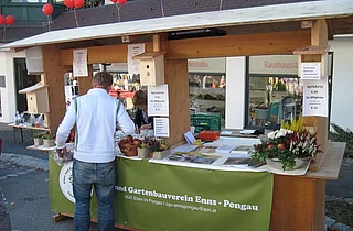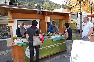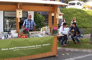 An diesem Tag beantwortet Obmann Dygruber Fragen und Sorgen der Besucher über Obst und Gartenbau.
