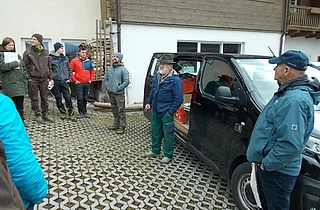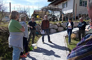 Der Baumschnittkurs 2016 bei der Familie Hölzl am Ortnergut. Vortragender ist Andreas Salzlechner