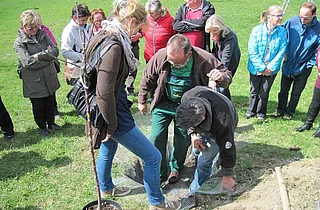 Nach dem Obstbaum pflanzen, wird der Obstbaumschnitt ausführlich vorgeführt mit Baumwärterin Elfriede Huber und Baumwärter Andreas Dygruber