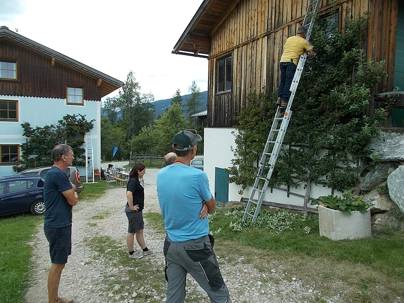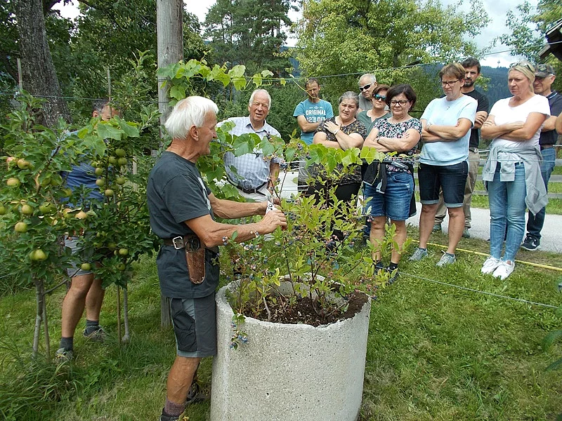 Obmann Dygruber, Gerhard Dygruber und Paul Kreuzberger führten diese Veranstaltung. Wobei Andreas sich um den Sommerschnitt an Obstbäumen beschäftigten und dazu anfallende Fragen beantworteten. Paul Kreuzberger und Gerhard Dygruber führten die Besucher im Schnitt an Johannisbeere, Heidelbeere, Brombeere. Himbeere usw. ein. Auch anfallende Fragen zu diesem Thema wurden ausführlich beantwortet. Mit Diskussionen unter den Teilnehmern über verschiedenste Themen in Obst- und Gartenbau und bei bester Bewirtung von Petra und Nikolaus Kirchgasser endet dieser Nachmittag.