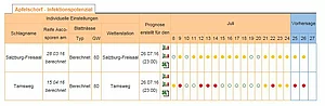 Das Portal www.warndienst.at bietet österreichweit Informationen zu aktuellen Monitorings und den aktuellen Prognosen für den Befallsdruck diverser Krankheiten. Auch für Salzburg werden relevante Prognosen für den Obstbau angeboten.