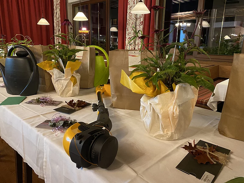 Schlußendlich führten wir noch unsere beliebte Tombola durch. Am Anfang der JHV erhielt jeder Teilnehmer ein gratis Los. Es gab wie immer tolle Preise: Gutscheine, Gartenutensilien, Pflanzen und 3 Hauptpreise. Ein Laubbläser gesponsert von Firma Holleis aus Maishofen, eine wunderschöne Hortensie mit Übertopf gesponsert von Garten a´la carte und ein Trimmer warteten auf neue Besitzer. Unser Glücks(b)engerl Hannes Salzmann verhalf Isabell Breitfuß, Elisabeth Neumayr und Edi Wimmer vom OGV Unken zum Gewinn der Hauptpreise. Wir gratulieren herzlich!!
