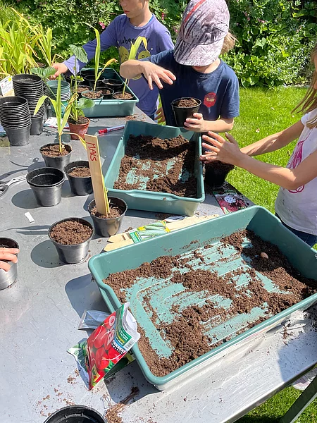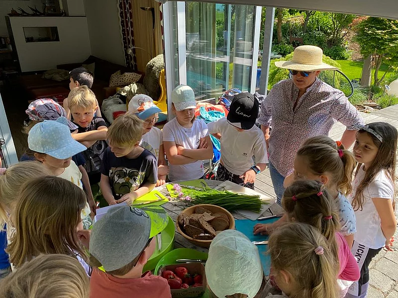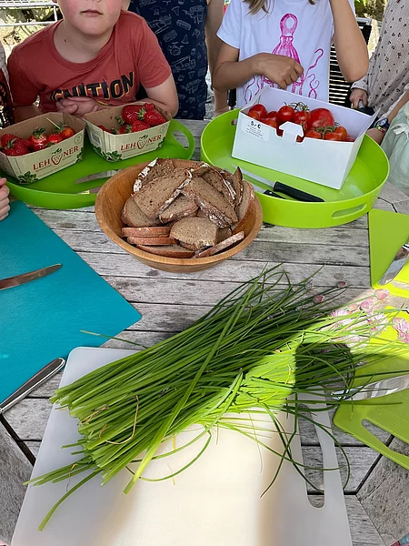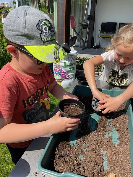 Die Kids durften sich selbst einen Topf mit Gurken oder Erbsensamen pflanzen, auch eine Maispflanze konnte von den Junggärtnern getopft und mit nach Hause genommen werden. Bei selbstgepresstem Apfelsaft, frischen Erdbeeren, Biotomaten und selbst geschnittenen und gestrichenen Schnittlauchbroten wurde der Gartenbesuch der Maishofner Junggärtner abgeschlossen.