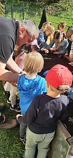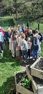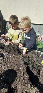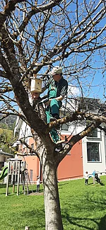 Die Kinder hatten sichtlich Freude an der Arbeit und konnten spielerisch erste Erfahrungen im Gartenbau sammeln. Zum Abschluss der gelungen Aktion befestigten Karl und Peter noch einen Nistkasten für Vögel an einem Baum- ein schöner Beitrag zum Natur- und Artenschutz. Der Vormittag war für alle Beteiligten ein tolles Erlebnis und wird den Kindern sicher noch lange in Erinnerung bleiben.
