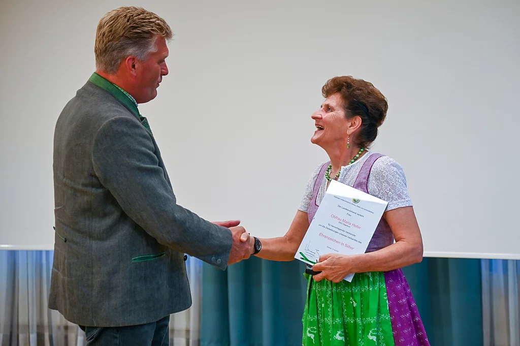 Verleihung des silbernen Ehrenzeichens des Landesverbandes Salzburg an Maria Hofer (13.7.2021)