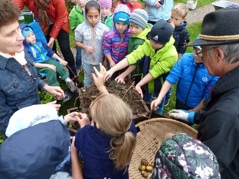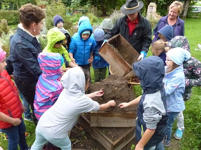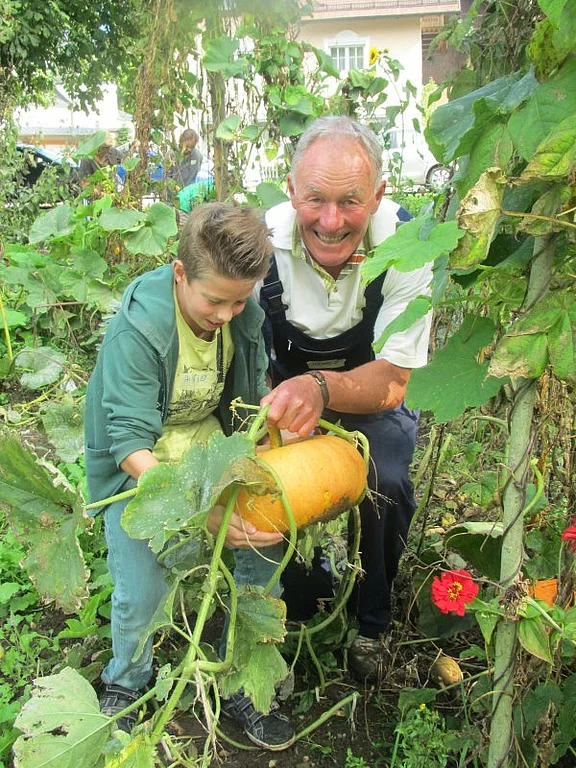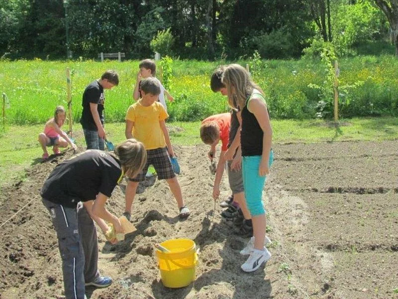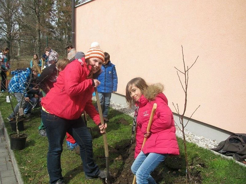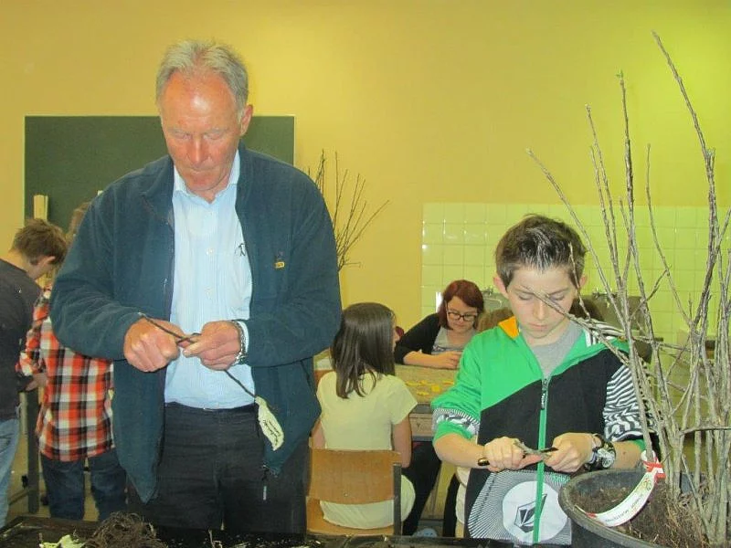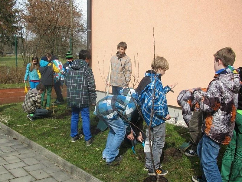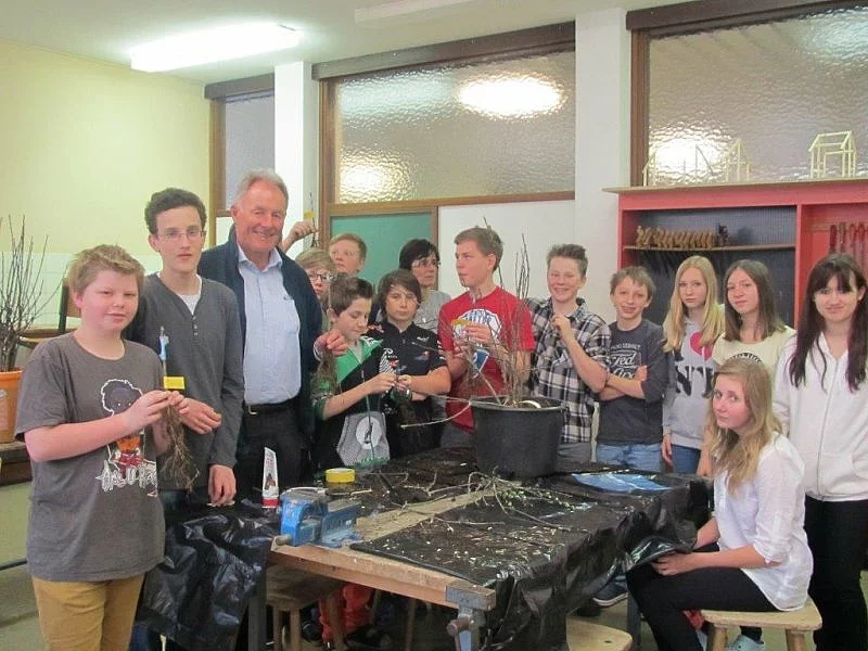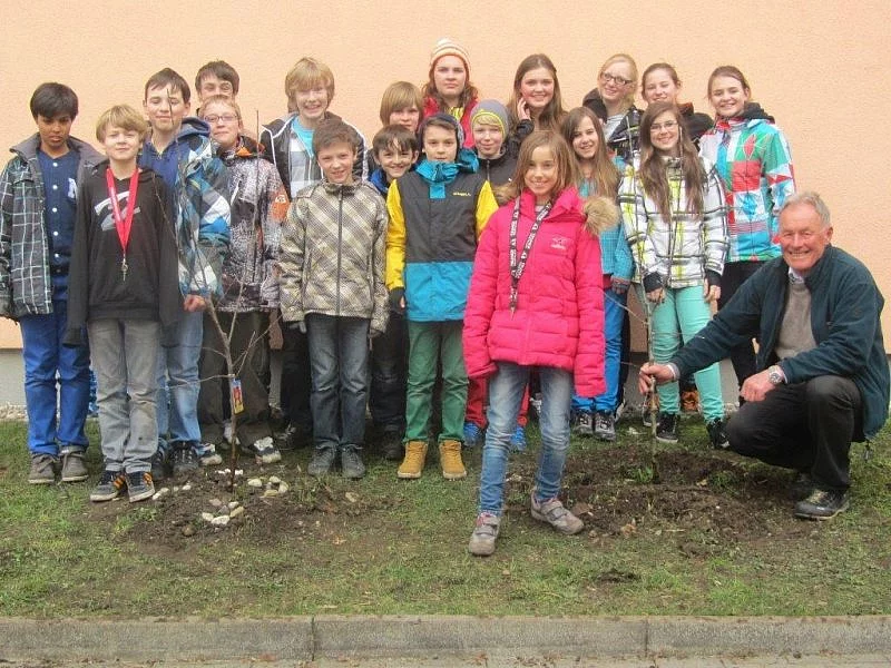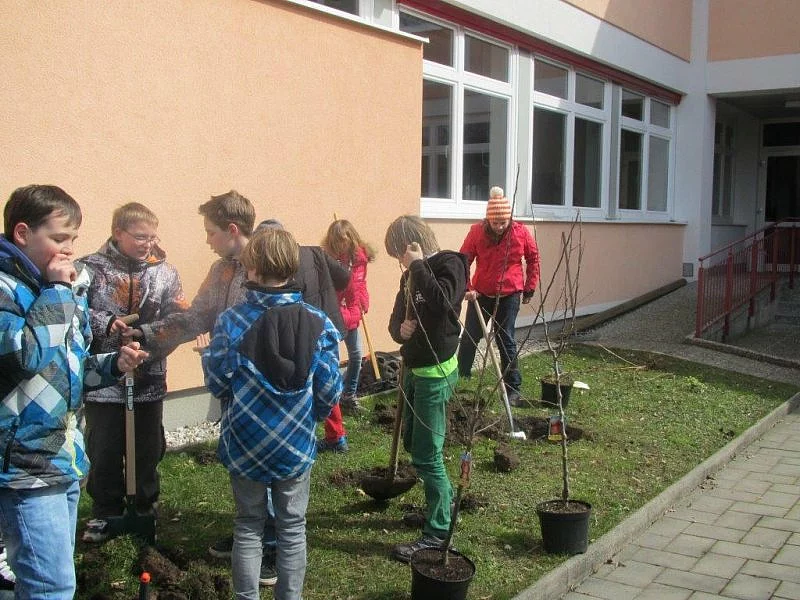 Bilder von der Pflanzung und Veredlung von Obstbäumen mit Hilfe von Schülern