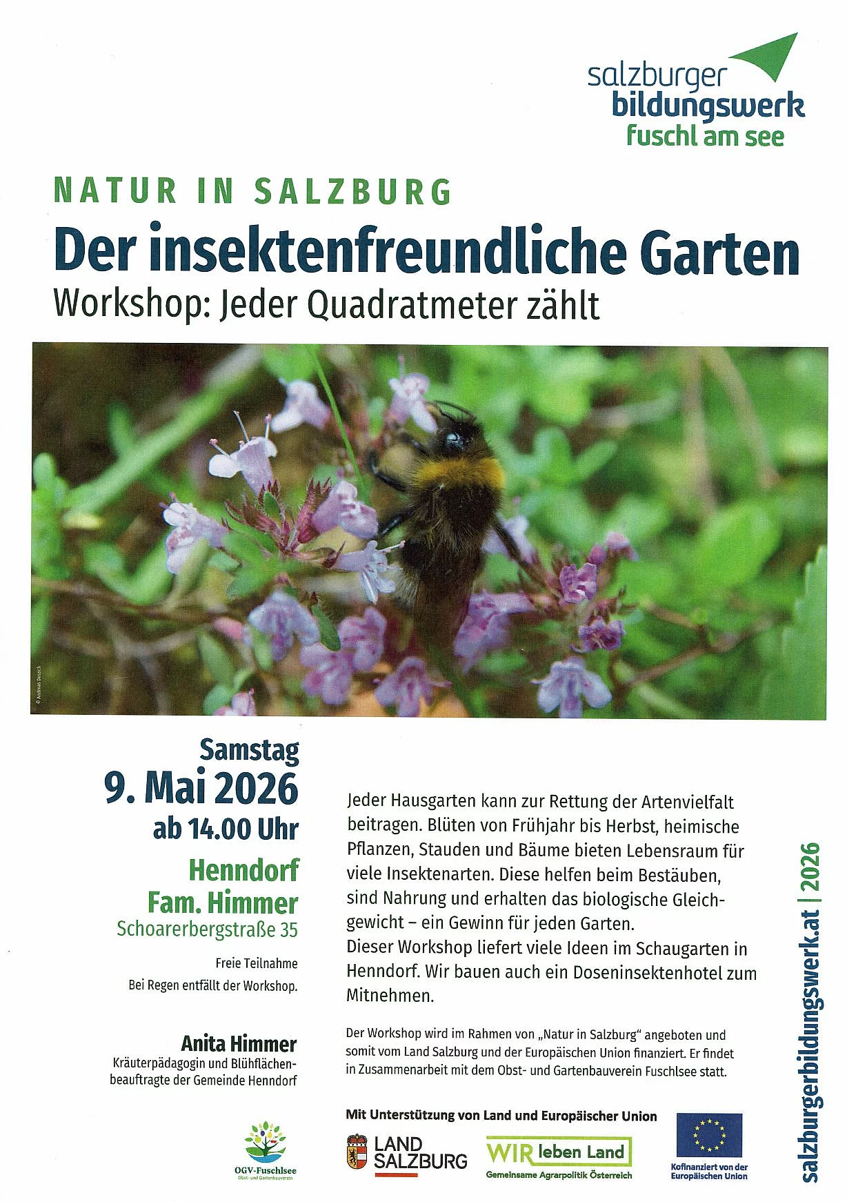 Nach dem Start in Fuschl mit einem spannenden Vortrag von Anita Himmer über insektenfreundliche Gärten besuchen wir sie und Ihre Wildbienen vor Ort in Henndorf.